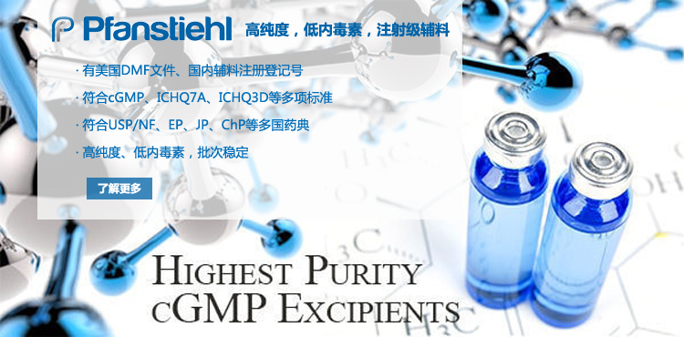 “熱烈祝賀Pfanstiehl的注射級甘氨酸Glycine(G-140)喜獲CDE登記號F20250000403, 這是Pfanstiehl產品獲得的第18個CDE登記號!”甘氨酸在醫藥輔料制劑中應用廣泛,, 可作為緩沖劑,增溶劑,穩定劑等,具有諸多優勢。Pfanstiehl秉承一貫高品質理念,為滿足全球生物制藥行業對于高品質甘氨酸的需求,隆重推出的注射級甘氨酸Glycine (G-140), 具有超高純度,超低內毒素,超低金屬殘留的特點,單獨檢測29種金屬離子,并且新增DNA,RNA,DNA酶,RNA酶和脂肪酶,亞硝酸鹽等多項質量指標的檢測,符合多國藥典規定(USP, EP, BP, JPE, ChP),可用于生物治療性藥物和疫苗的生產。產品信息:· 產品名稱:Glycine, High Purity, Low Endotoxin, Low Metals, USP, EP, BP, JPE, ChP (G-140)· 中文名稱:甘氨酸· 分子式:C2H5NO2· 分子量:75.07 g / mol· CAS號:56-40-6· 產品貨號:G-140產品特點: · 超高純度,超低內毒素,超低微生物含量,超低金屬雜質殘留· 質量指標新增DNA,RNA,DNA酶,RNA酶,脂肪酶和亞硝酸鹽檢測· 符合多國藥典:USP, EP, BP, JPE, ChP· 符合ICH Q3D標準· 符合GMP標準· 已獲DMF和CDE登記號 產品應用:· 緩沖劑· 穩定劑· 增溶劑如果您對Pfanstiehl注射級別Glycine G-140感興趣,歡迎聯系Pfanstiehl 中國區代理商北京西美杰科技有限公司獲得如下詳細的產品概況說明文件和測試樣品。Pfanstiehl Inc.最新產品系列如下,歡迎聯系北京西美杰科技有限公司獲取100g裝免費樣品。北京西美杰科技有限公司為Pfanstiehl中國代理,為客戶提供完善的技術支持與售后服務。歡迎撥打西美杰客服電話400-050-4006或者登陸網站www_xmjsci_com.caguai.cn了解更多信息。 更多>西美杰介紹